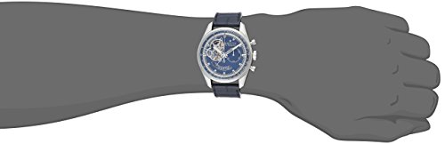 -. Feature : Round watch with blue skeleton dial featuring tachymeter track, exhibition case back, rhodium-plated hands and indices, and sweep second hand / Power reserve indicator at 6 o'clock, small seconds dial at 9 o'clock, and 30-minute dial at 3 o'clock / 42 mm stainless steel case with domed anti-reflective sapphire dial window / 39-jewel Swiss automatic movement with 50-hour power reserve and analog display / Alligator-leather band with protective rubber lining and triple folding clasp / Water resistant to 100 m (330 ft): In general, suitable for swimming and snorkeling, but not scuba diving / Blue open dial / Stainless steel case and blue leather strap / Swiss-automatic Movement / Case Diameter: 42mm / Water Resistant To 330 Feet