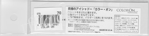 -. Feature : 究極のアイシャドウ「カラーオン」ならプロの様なアイメイクがたった30秒!! / カッコイイ!? 可愛い!? セクシー!? きっと毎日違うあなたに出会える。 / 「究極のアイシャドウ」「時短メイク」として注目度が急上昇中のインスタントアイシャドー「カラーオン」(読売TV「あさパラ!」、朝日TV「おはよう朝日です」など各局TV番組で紹介されました) / 使い方はとっても簡単! 「カラーオン」のシートをまぶたをやさしくおおって上から指でそっと馴染ませるだけ。あっという間にお好みのカラーが転写できちゃうお手軽なアイシャドウです。 / 商品内容:カラーオンシート 1枚(色が薄くなるまで何度もご使用できます)