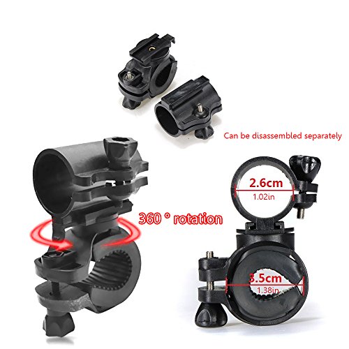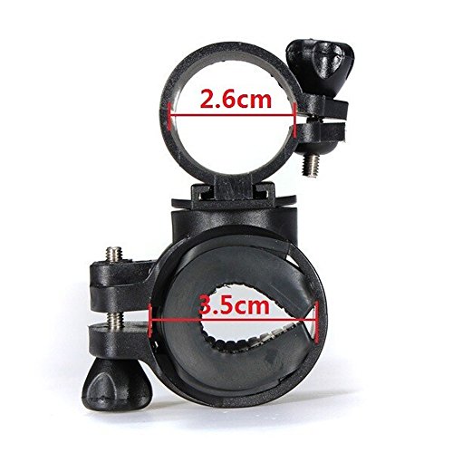 Specifications: Color:Black Model: 360°circumrotate Material : strong plastic with high quality design 20 x 68 x 1 mm elastic Anti-slip Pad 24 x 70 x 5 mm elastic Anti-slip Pad 2.6cm Diameter for Flashlight 3.5cm Diameter for Bicycle