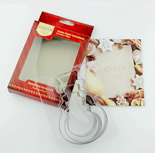 3-Pk Pastry Cookie Fondant Cookie Cutters Mold - Stainless Steel (Snowman), 3.2"/4"/4.8" High