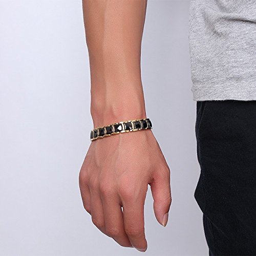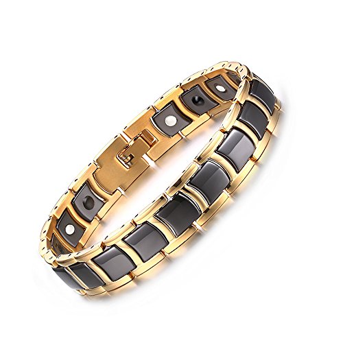 Bilong Men s스테인레스 스틸 세라믹2?in 1?Theraphy Healing게르마늄 자기 팔찌 블랙 골드