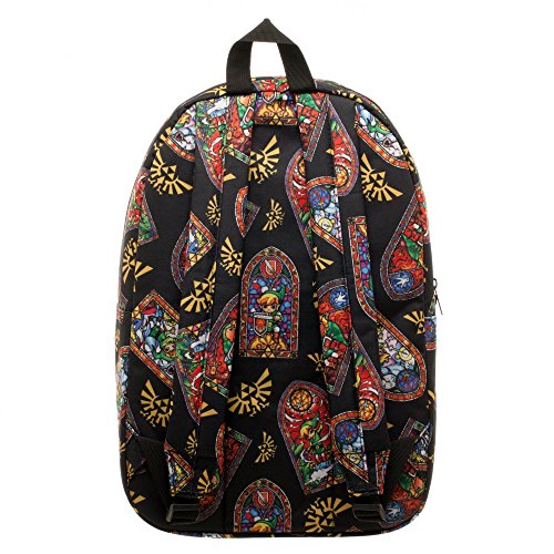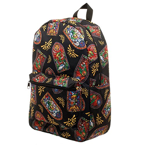 -. Brand : bioWorld -. ClothingSize : One Size -. Color : Black -. Department : Lage & Travel Gear -. EAN : 0190371095955 -. Feature : Made of Polyester / This retro backpack has a front pocket that includes a zipper and adjustable padded straps. / Includes Back Straps for Easy Carrying / Great for Back to School! / Officially licensed. -. ProductGroup : Apparel -. ProductTypeName : LAGE -. Size : One Size -. Title : Zelda Skyward Sword Stained Glass Backpack -. UPC : 190371095955