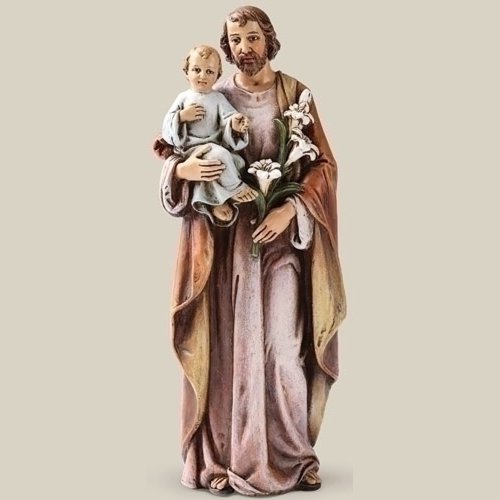 Catholic Gift 6 Inch Stone Resin Saint St Joseph with Jesus Christ Child Home Chapel Decoration