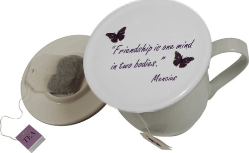 -. Brand : Topit -. Color : White with lettering -. EAN : 0741360330511 -. Feature : Quote reads, "Friendship is one mind in two bodies" Mencius / Turn it over and use it as a tea bag caddy / Topit fits most cups and mugs / It doesn't alter the taste or smell of tea or infuse it with toxic chemicals like a plastic lid can / One tea cup cover / cup not included -. Label : Abundant Vida LLC -. Manufacturer : Abundant Vida LLC -. Model : 0741360330511 -. PackageQuantity : 1 -. ProductGroup : Kitchen -. ProductTypeName : KITCHEN -. Publisher : Abundant Vida LLC -. Size : Small -. Studio : Abundant Vida LLC -. Title : Tea Cup Cover/Lid with Tea Bag Caddy - Friendship -. UPC : 741360330511