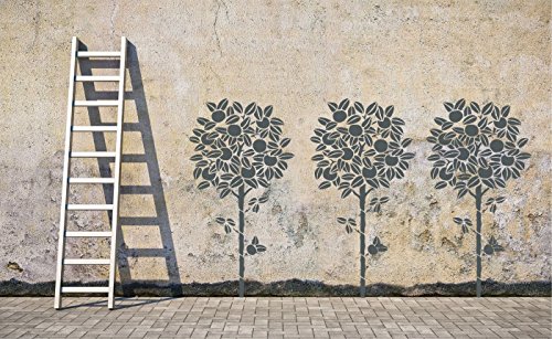 If you haven't got the stamina for a whole wall a single large stencil can add a bright splash of color. Large stencils make a stunning accent on an empty wall, try them near a sofa or table or even by the skirting board of pretty much any wall space that needs that extra something.