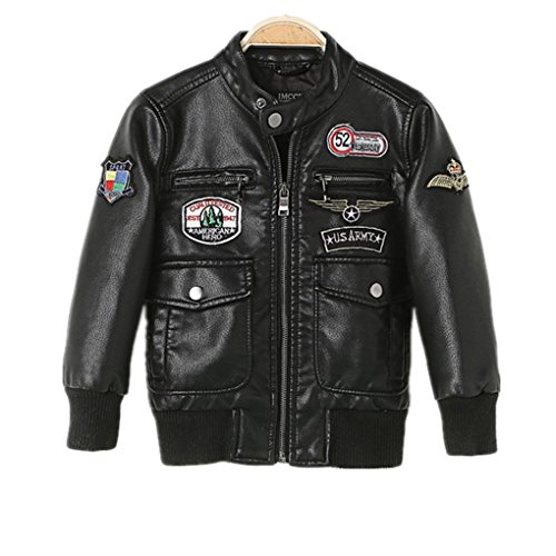 -. Binding : Apparel -. Brand : SKY-ST -. Department : boys -. Feature : There are two big side vertical pockets in front of the jacket,the Snapped handwarmer pockets design convenient for keeping everyday things / The cuff and the bottom are stitched with stretched and plicated elastic cord,handsome and thermal / The stand-up collar design with a button closure in front of neck / Full zip front closure,trendy and warm / Shipping Time: To US 7-15 business days, To Canada 9-15 business days -. ProductGroup : Apparel -. ProductTypeName : OUTERWEAR -. Title : Boy's Trendy Stand Collar PU Leather Moto Jacket Leather Coat (3-12)T