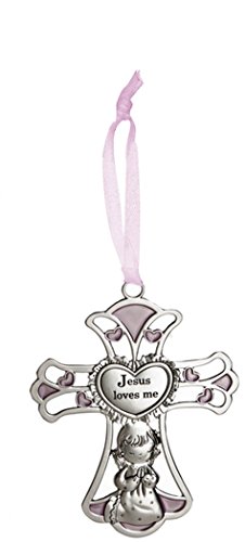 Ganz 4'' Ornate Baby Crib Cross Decor with Ribbon for Hanging (Jesus Loves Me - Pink)