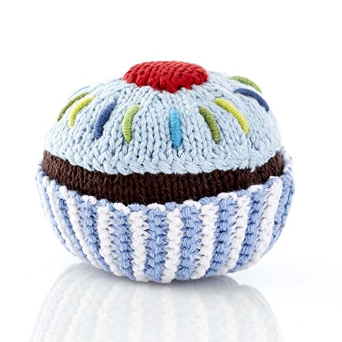 This Pale Blue Cupcake Rattle even has sprinkles and a cherry on top! Just the right size for little hands to grab and shake. Hand made using super soft 100% cotton yarns. Pebble products are made entirely by hand with natural materials and as such there will be slight variations in size, color and design in line with the unique nature of this product. Materials: 100% cotton with 100% polyester fill. Care instructions: machine washable and can be tumble dried on a low setting. All Pebble products are made in Bangladesh by the extremely talented and capable artisans at Hathay Bunano, helping women out of poverty and putting smiles on faces worldwide! Certified and Guaranteed Fair Trade by the World Fair Trade Organization.Feature