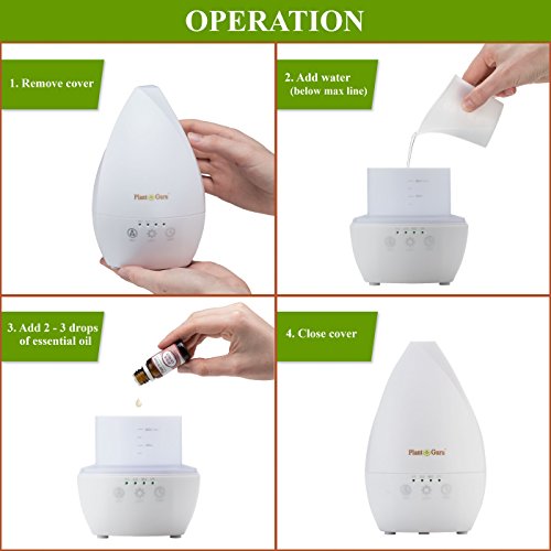 Plant Guru Essential Oil Ultrasonic Diffuser White 200 ml. Touch Screen Auto Shut-off and 7 Color LED Lights. Great For Beginners, Use In Home, Bedroom, Bathroom Or Office