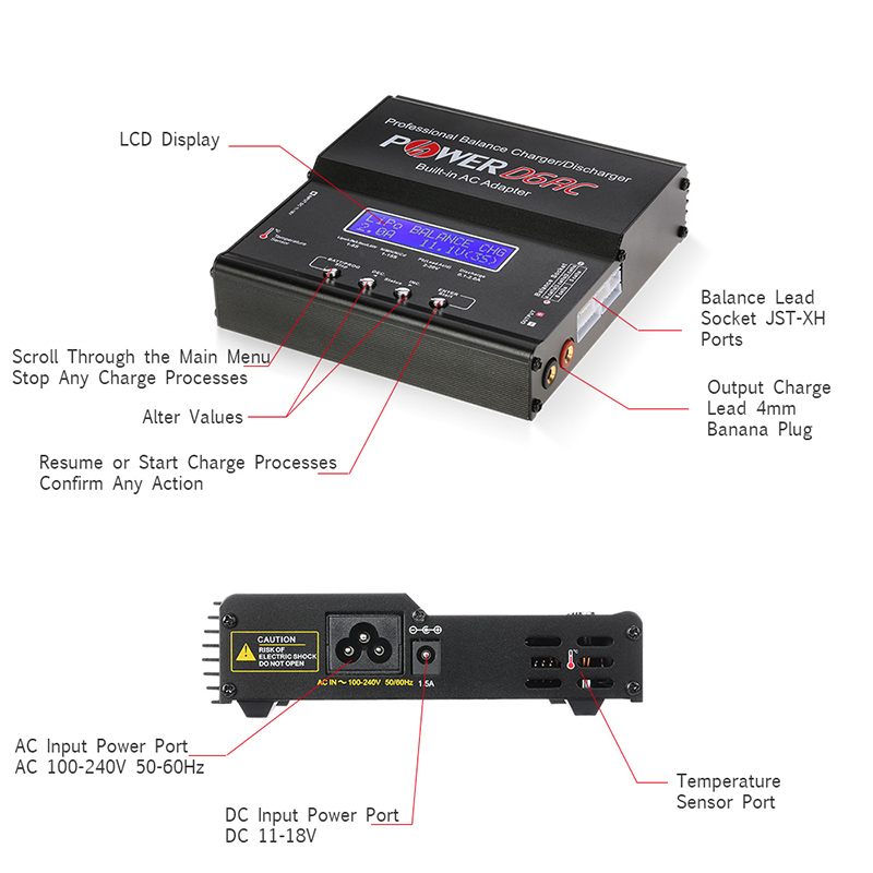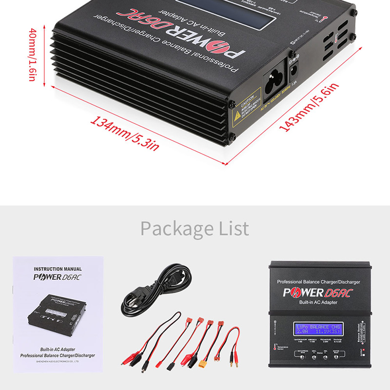 H-POWER HP2002 D6AC charger is an economic, high quality 11-18V DC or 100-240V AC balance charger, designed for charging LiPo LiFe Lilon NiCd NiMh Pb batteries, The circuit power is 60W and max charge current can reach at 6A.