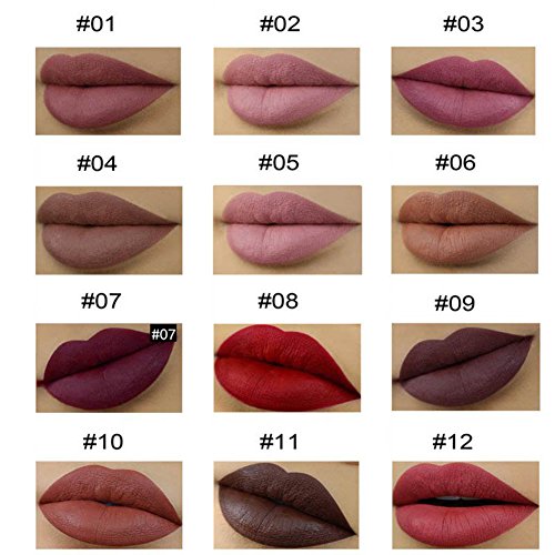 Please Note: Due to effect of different light, the actual colors may be slightly different from the picture. Hope you could understand! Tips: 1. It's Waterproof, and would Not stick on Cup. 2. it's better to use the lip balm or based lip items before putting it on your lip. 3. It will have good effect if you apply a very thin layer. 4. Don't compress lips after applied the gloss, or it will be sticky. 5. It will looks a little darker if you use lip brush than your hands. so Lip brush is strongly recommended. 6. Because it is the effect of matte velvet ,you can touch and drink water, but you can not eat something grease 0 |