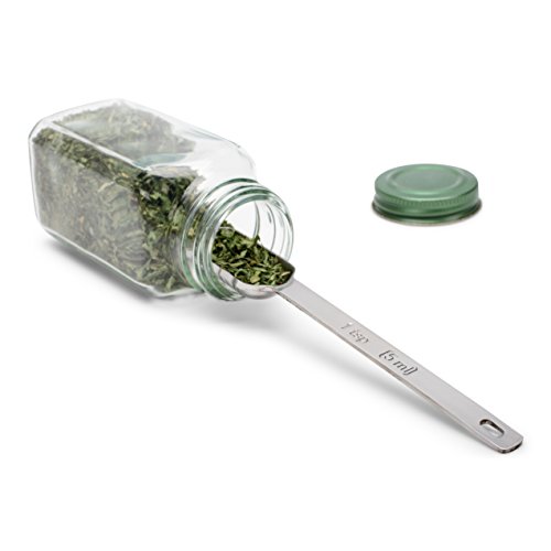 2LB Depot Tea Spoon Measuring Spoon, 1 Tsp (5 ml), 18/8 Stainless Steel, Narrow Long Handle Teaspoon Scoop Design Fits in Spice Jars, Set of One
