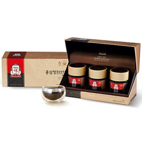 -. Binding : Kitchen -. Brand : CheongKwanJang -. EAN : 8809332393383 -. Feature : CheongKwanJang by Korea Ginseng Corporation (Made in Korea) / 100% Korean red ginseng concentrated extract made with KGC's 100 years of tradition and know-how. / Made only from carefully selected 6-years-grown fresh ginseng roots that are cultivated through 100% contract farming in Korea. / Red ginseng concentrate(6-year-old, solid 64%, Ginsenoside Rg1+Rb1+Rg3 5.5 mg/g, Korean) 100% / Sested Use: Adult can take 1g per serving, up to 3 times a day. Children 3-15 years can take half the adult serving. -. IsAdultProduct : 0 -. Label : KOREA GINSENG CORP. -. Manufacturer : KOREA GINSENG CORP. -. ProductGroup : Home -. ProductTypeName : HOME -. Publisher : KOREA GINSENG CORP. -. Studio : KOREA GINSENG CORP. -. Title : KGC CheongKwanJang Korean Red Ginseng Extract Gift Set 330 gram (110g x 3 bottles)
