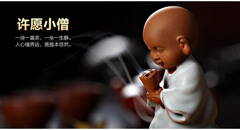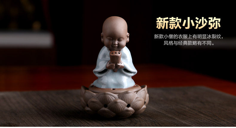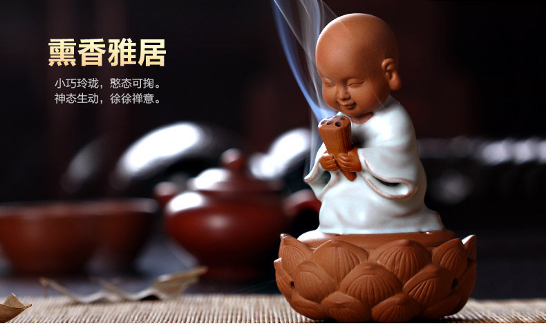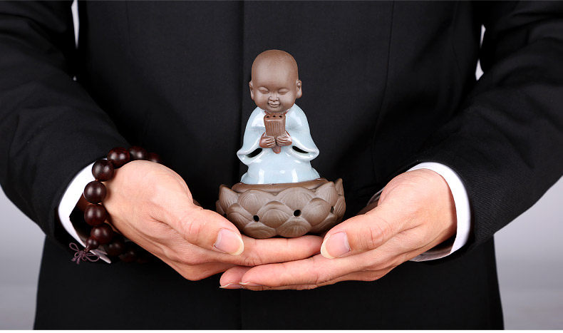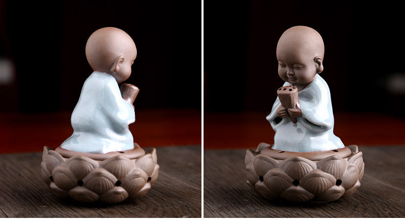 上善若水陶瓷香炉许愿小僧 盘香小香炉 汝窑茶宠摆件檀香熏炉0178