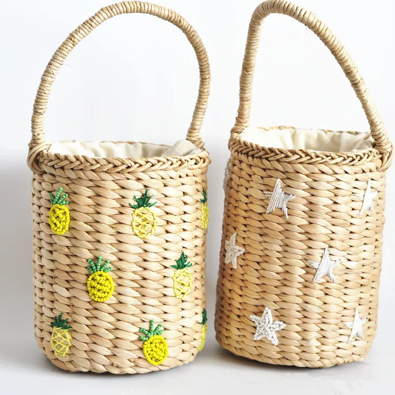 travel beach bags:cylinder woven handbags