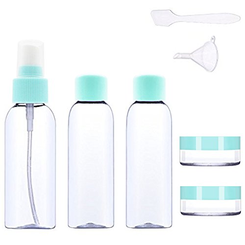 - VARIETY OF BOTTLES TO MEET DIFFERENT NEEDS: one 40ml flip-cap bottle (3.3 x 1.8 inches), one 30ml flip-cap bottle (3.3 x 1.8 inches), one 30ml spray bottle (3.7 x 1.8 inches), two cream jars (0.4 x 1.7inches), one funnel, one spatula, one zip pouch.