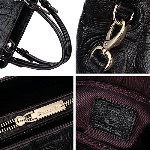 -. Brand : ZOOLER -. Department : womens -. Feature : Materials: Top layer cowhide lether. Fashion style. / Hardware& Lining& Closure: High quallity hardware. Interior polyester lining. Top zipper closure. Could zip smoothly. Bottom with golden metal rivets protective. / Structure: Two main compartment pockets with 2 zipper pockets and 2 multifunctional pockets. Exterior 1 backwall zipper pocket . Can make your things well organised. / Strap: Double handle with a removable and adjustable long shoulder strap(Length of shoulder strap is about 45.7"). Convenient and comfortable to wear in 3 ways: Tote, Shoulder and Cross Body. / Capacity: Easily carry your mobile phone, wallet, cosmetic, PAD and other daily things. Dimension:(L*W*H)12.1"*4.9"*8.7" in. Net Weight: 0.9 kg(including shoulder strap). -. Model : SY-2651 -. ProductGroup : Shoes -. ProductTypeName : HANDBAG -. Title : ZOOLER Genuine Leather Handbags for Women Top Handle Bags Crossbody Bag Solid Color