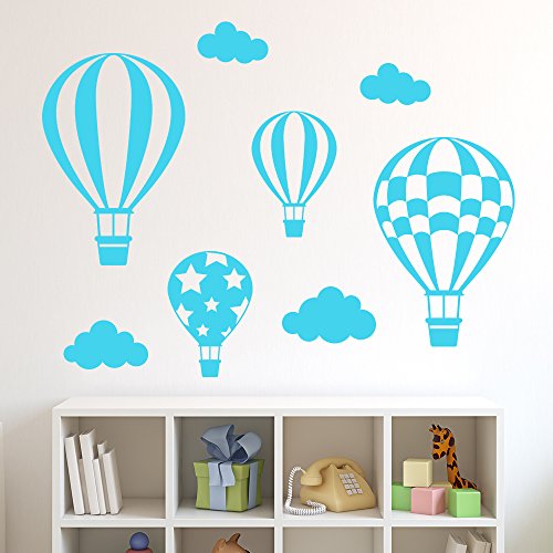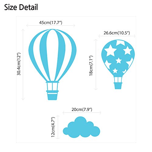 Decowall,DWG-602-3B,Hot Air Balloons Graphic Kids Wall Decals Wall Stickers Peel and Stick Wall Stickers for Kids Nursery Bedroom Living Room (Blue)