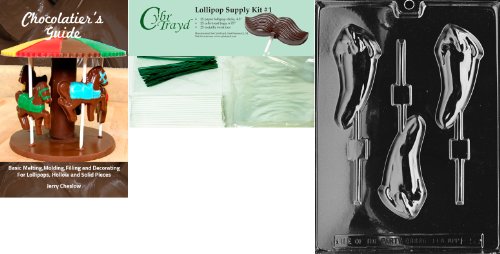 Cybrtrayd 45StK25GRBk-F059 Hot Pepper Lolly Chocolate Candy Mold with Chocolatier's Bundle, Includes 25 Lollipop Sticks, 25 Cello Bags, 25 Green Twist Ties and Chocolatier's Guide