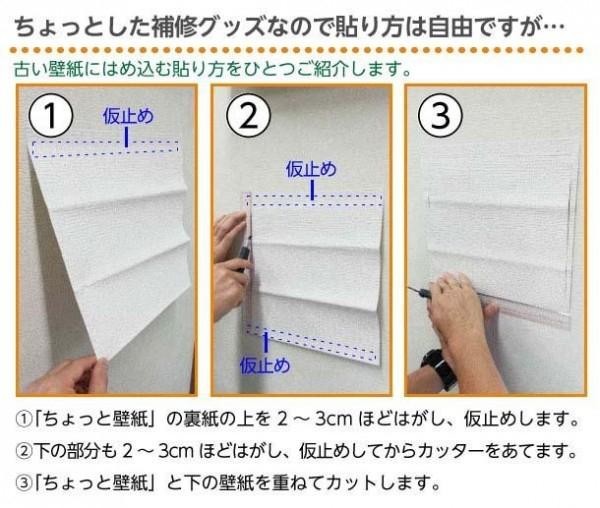 裏紙をはがして貼るだけのシールタイプです。今、お部屋に貼ってある壁紙の上から重ねて貼れます。ちょっと穴をあけてしまったところ、ちょっと汚れたところに隠すようにチョコっと貼れます。お好きなサイズにカットして、裏紙をはがして貼るだけ。幅広い用途で使えます。 |