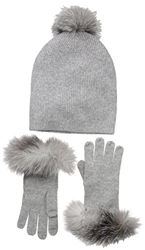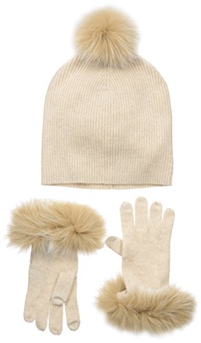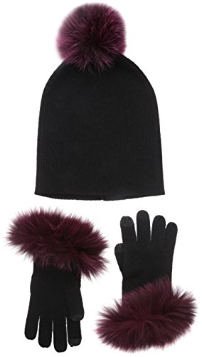 Sofia Cashmere Women's 100% Cashmere Gift Box Set Trim Gloves and Fur Pom Hat