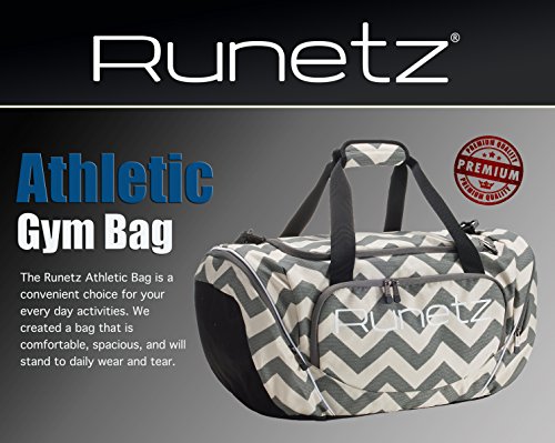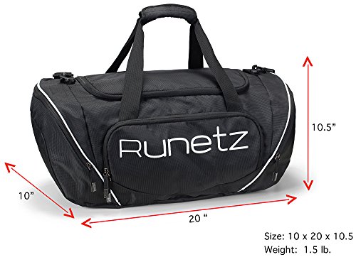 -. Brand : Runetz -. Department : unisex-adult (lage only) -. Feature : VERSATILE & FUNCTIONAL: This Athletic Sport Bag is perfect for the avid gym goer with plenty of room to fit all the essentials for a productive workout, And is big enough to accompany you on your Weekend Warrior adventures / COMFORTABLE: Adjustable & Detachable Padded Shoulder Strap for comfort and Dual Handles for easy carrying - Material: Polyester / STURDY & DURABLE: Ultra light yet extremely durable, this is a bag you can trust to not break or tear. Made from the highest quality materials with reinforced stitching for maximum durability. Guaranteed to get you to and from the gym or trip without any issues / POCKETS: This bag comes with a VENTILATED pocket for your laundry, wet towel or shoes to keep you clothes dry and fresh while minimizing odor. Also comes with multiple zipped pockets for organization and easy access / GREAT SIZE & ROOMY ENOUGH: The Runetz Athletic Bag is thoughtfully sized to maximize a more pleasant experience measuring at just the right size: Bag Dimensions: 20 x 10 x 10.5 inches -. ProductGroup : Apparel -. ProductTypeName : LAGE -. Title : Runetz - Gym Bag Sport Shoulder Bag for Men & Women Duffel 20-inch Large