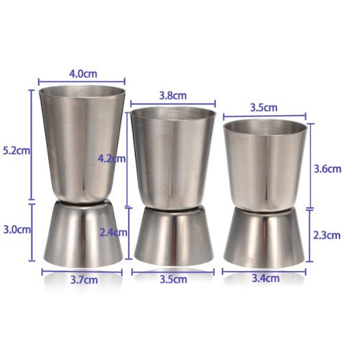 Item specifics: Mixology is an art that rewards precision. Even pro bartenders still need a dependable cocktail jigger for the accurate measuring that ensures world-class drinks. This jigger set is made of durable stainless steel and has two functional sides. It is available in three sizes for your cocktail creating convenience, so you'll always have the exact measurement you need. Stop ruining your drinks with pours that are just too strong. Put this stainless steel cocktail jigger behind your bar and you'll be a drink mixing maestro! Material:18-8 Stainless Steel ,Large Jigger Capacity: 25-50c.c (0.8-1.7 oz.) Dimension: 3.18" Height Package Included: 1x Stainless Steel Double Jigger