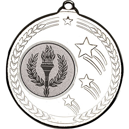 -. Title : Pack of 10 Shooting Star Medal - Silver (1in Centre) 2in