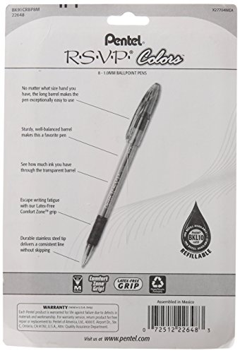 -. Feature : Pentel R.S.V.P. Ballpoint Pen, Medium Point, Assorted Ink Colors, 8 Pack (BK91CRBP8M)