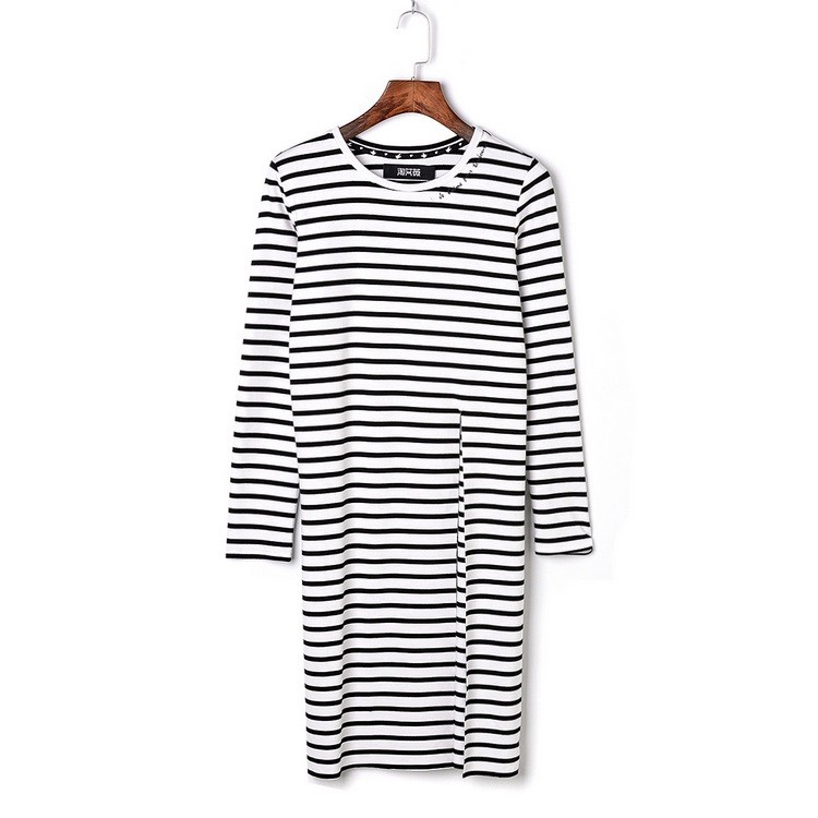 トレンドのストライプ柄を使用した長袖ワンピースです♪