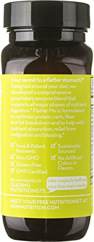 -. Feature : SLIMMING SECRET - Flatter Me was designed as a vegetarian-friendly way to optimize digestion of protein, carbs, fiber and fats, which may promote a slimmer stomach PROTEASE BLEND, BROMELAIN, PAPAIN - Studies have linked digestive enzyme blends with easing indigestion and addressing related issues including bloating and fullness / TARGETED ENZYME SUPPORT - We've added lactase for milk sugars, amylase for carbs, beta-glucanase for fiber, lipase for fat, and papain for protein / FENNEL, PEPPERMINT AND GINGER - Comforting herbs soothe and offer support optimal gut health / SCIENCE-BASED BEAUTY FROM WITHIN - We believe in products that deliver on their promise, and choose ingredients based on clinical trials and the scientific support behind them / All our products are non-GMO, paraben-free, grown without pesticides, GMP certified, and gluten-free
