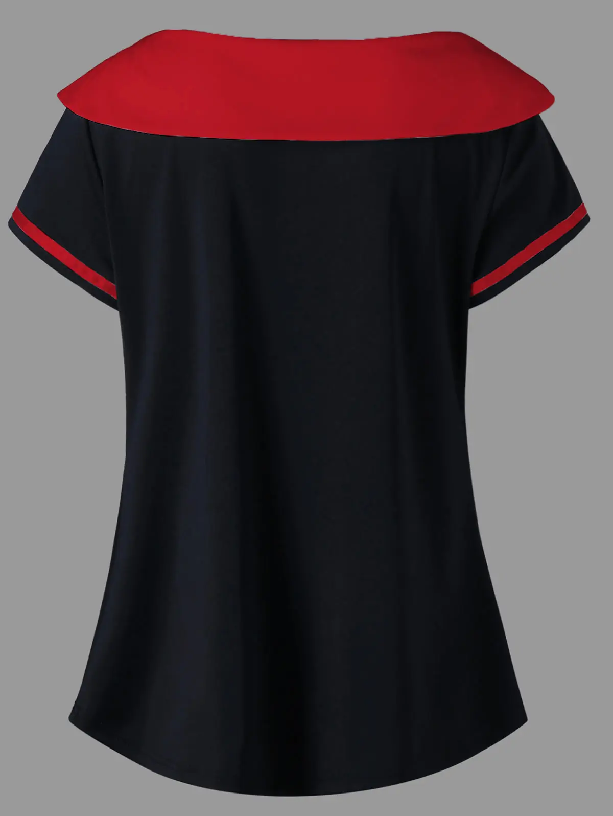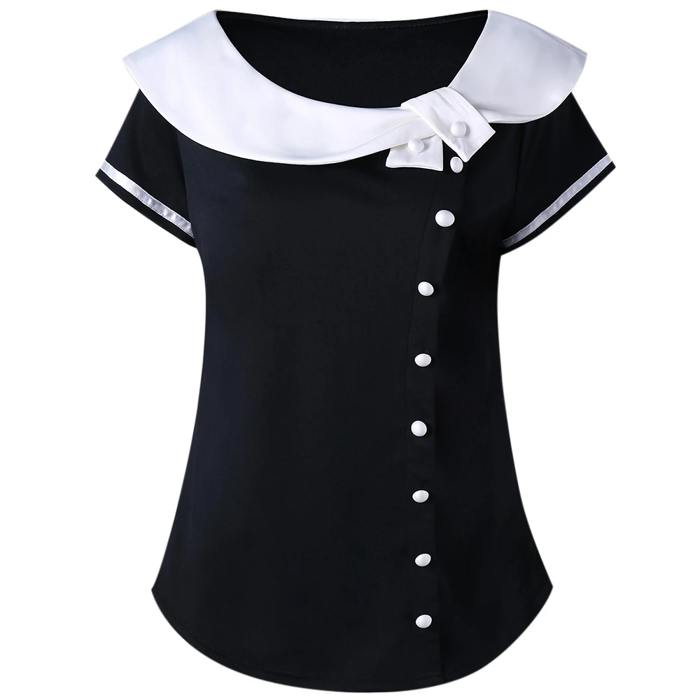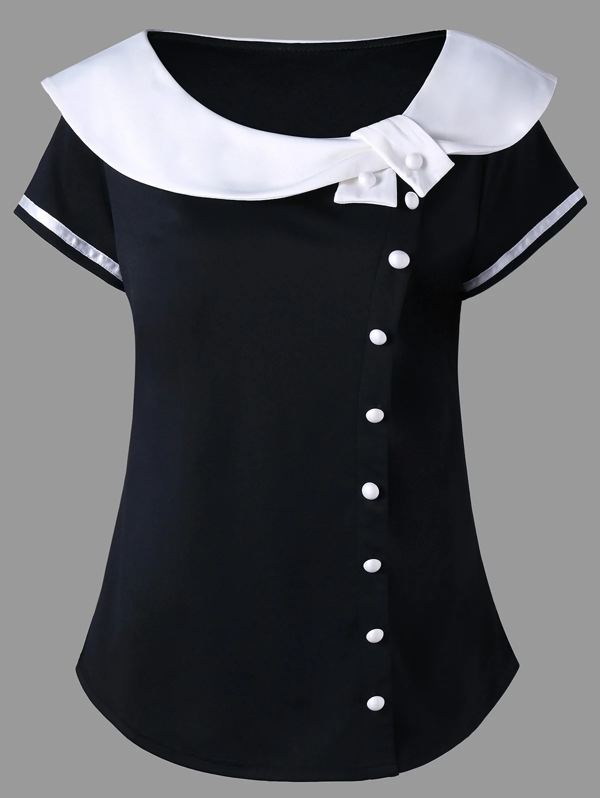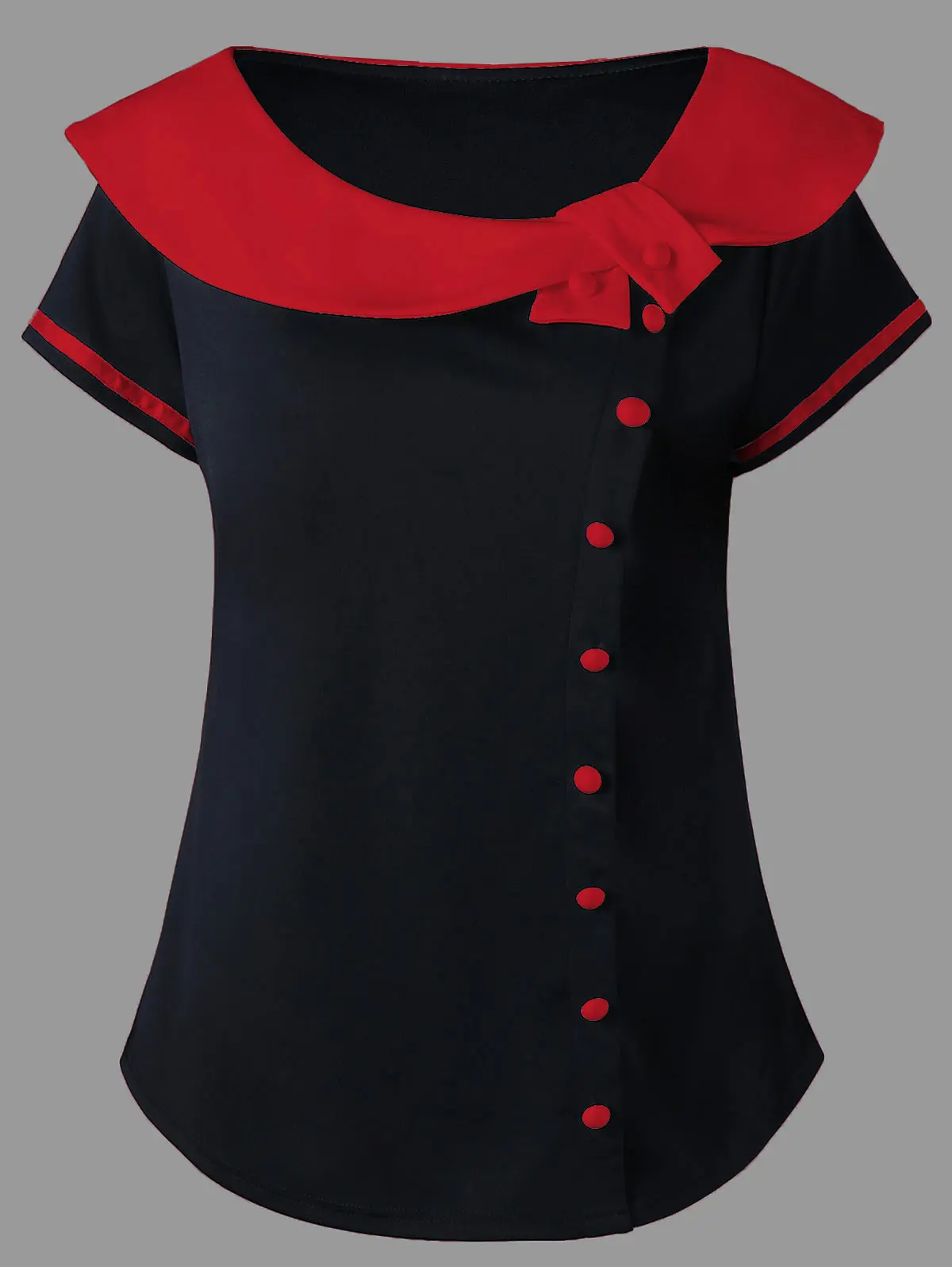 Model Number:514 Plus Size Peter Pan Collar Buttons T-Shirt