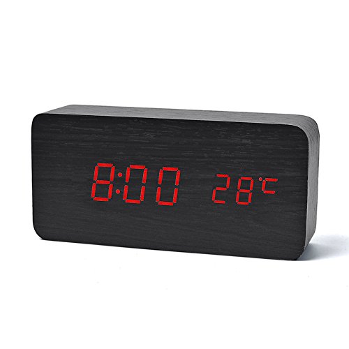 -. Title : FiBiSonic デジタル 置き時計 LED 目覚し時計 大音量 アラーム カレンダー付 気温 音声感知 USB ウッド ナチュラル風 おしゃれ プレゼント