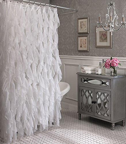 Cascade Shabby Chic Ruffled Sheer Shower Curtain (White)