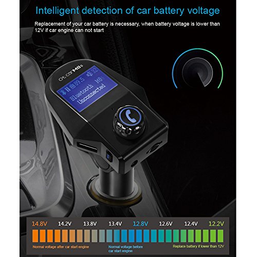 This equipment can detect battery¡¯s voltage. High-Quqlity Bluetooth Transmitter - More stable FM signal, better anti-interference performance, enhanced sound experience and built-in microphone with Echo cancellation and noise suppression (CVC) technology, offer your hands-free talking and wonderful music.