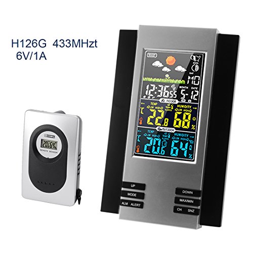 Mainly Function:Weather forecast;Indoor thermometer(32 to 122 Fahrenheit or 0 to 50 Celsius),RF outdoor thermometer(-4 to 158 Fahrenheit or -20 to +70 Celsius);Indoor hygrometer(20% to 95%),RF outdoor hygrometer(20% to 95%);Alarm & Snooze;Calendar(date, month ,year:2017-2050);Day of week in 7 languages(English,German,French,Spanish,Italian,Dutch,Danish);Receiving the most 3 channels;Lower battery display;The valid distance for the Emitter and Receiver is 30M.