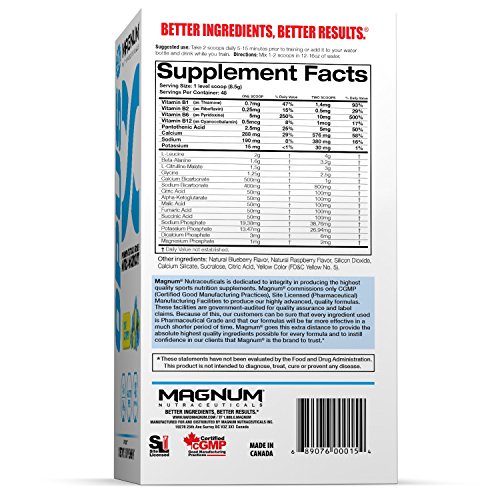 -. Feature : STIMULANT FREE PRE-WORKOUT - Move away from stimulants and nervous energy pre-workout supplements. Magnum Opus is a pharmaceutical grade intense intra-workout developed to activate explosive gains without the use of stimulants. / ANAEROBIC PERFORMANCE - Supercharges Your Bodies Muscular Energy Cycle While Keeping You In a 100% Anabolic State! Enter the gym a human and leave the gym a beast! / DELAY FATIGUE - Workout harder and longer with no limitation! A key ingredient that allows you to train harder without burning muscle tissue is L-Leucine. Leucine is a branched-chain amino acid, or BCAA, that is an essential source of energy for your muscles. - Formulated to Delay The Onset of Muscular Fatigue / IMPROVE STRENGTH - A key ingredient found in Magnum OPUS® is the patented Carnosyn®, which is the purest and highest quality Instantized Beta Alanine. CarnoSyn® activates enzymes responsible for generating muscle contractions and increases intra-muscular Carnosine, which is used by your type II muscle fibers for explosive movements like weight training and sP.R.Inting. / FAST ACTING FORMULA - Magnum OPUS® is the first workout fuel that you feel in minutes without any stimulants. Magnum OPUS® enables you to train harder than ever before with no fear of losing muscle or energy production breakdown.*