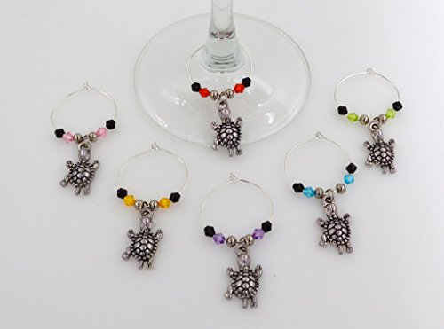(It's All About...You!)/Kitchen Dining/Bar Tools Glasses/DIRECT FROM USA/Turtle Wine Glass Charms - 6 Piece Cocktail Drink Charm Set in Black Velour Gift Pouch