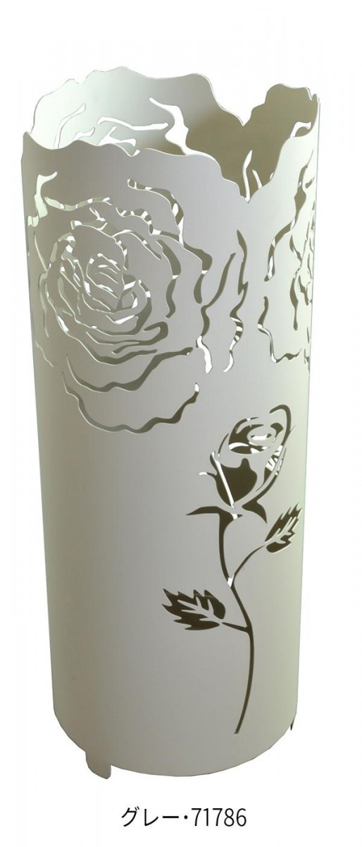 ローズの花びら型にカッティングされたおしゃれで品のある傘立てです。すっきりとしたフォルムがローズを引き立てて、玄関を華やかに♪ 製造国:中国 素材・材質:アイアン 商品サイズ:Φ19×H49cm ※サプライヤー直送品 ※2018年11月下旬入荷分予約受付中【商品名】ロイヤルアーデン アイアン傘立て S ローズ グレー・71786