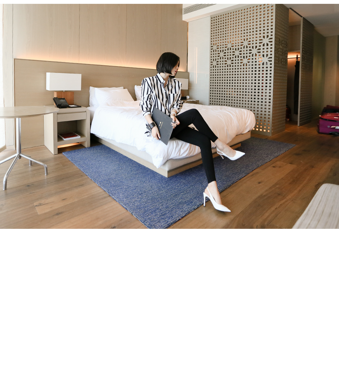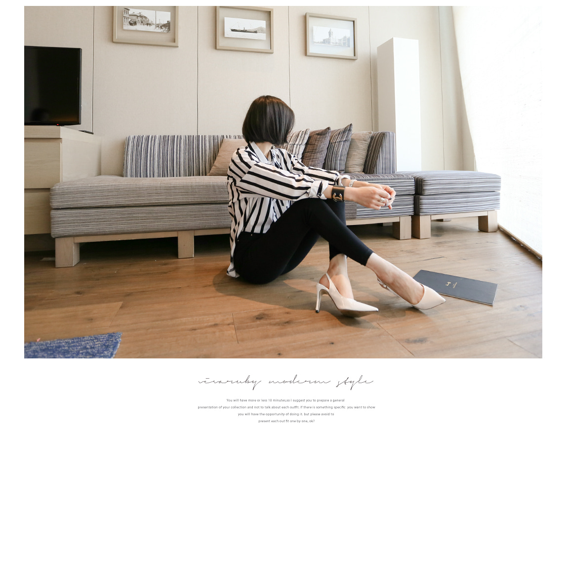 シンプルながらも、トレンディな配色・ストライプパターンと