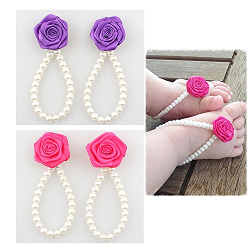 -. Feature : Packing: 2 Pairs of Baby barefoot flower sandals / Cute Baby Idea gifts / Color: 1 pair of pink, 1 pair of purple