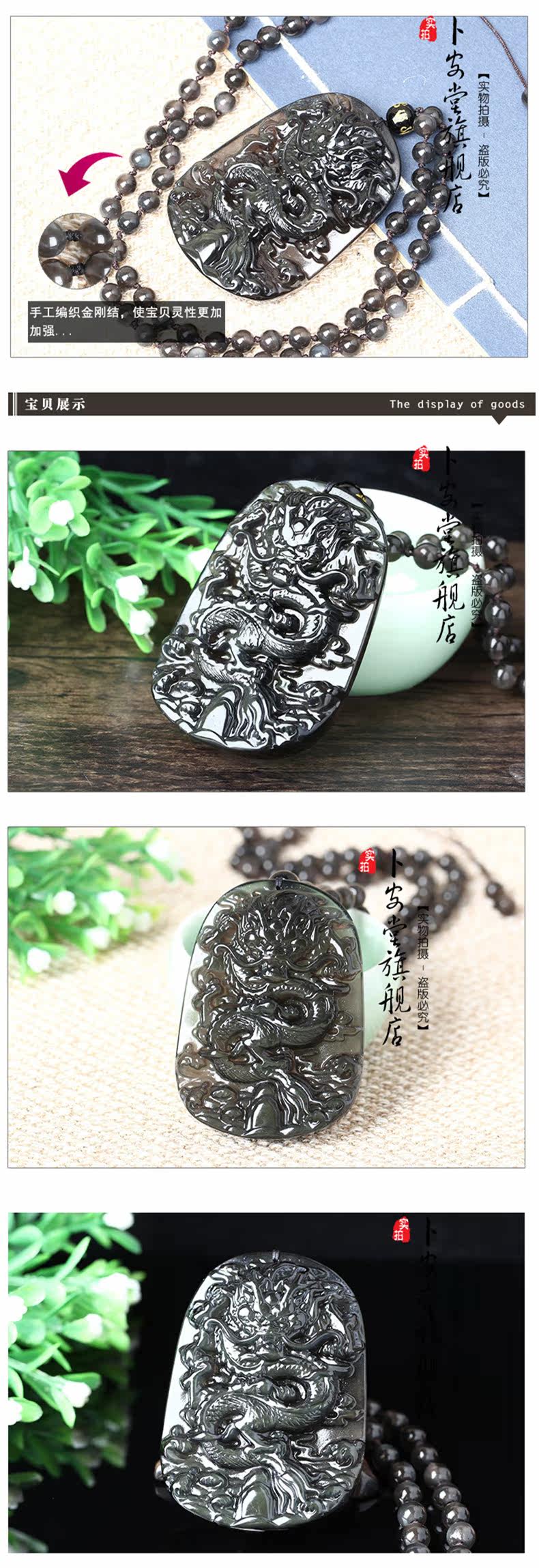 开光天然冰种彩虹眼黑曜石龙牌黑龙迎禄神龙赐福吊坠