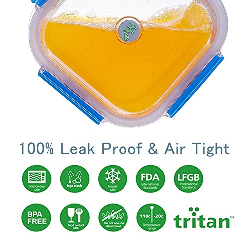- PREMIUM EASTMAN TRITAN MATERIAL: The storage container is made of premium EASTMAN TRITAN,100% BPA and Phthalate free,100% FDA approved, good scratch, stains and odor resistance, very tougth, microwave, freezer and dishwasher safe, temperature resistance: -40 degree celsius to 109 degree celsius