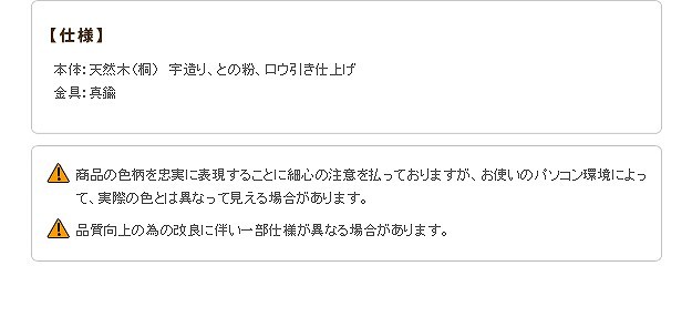 材質:本体-天然木(桐)・字造り・との粉ロウ引き仕上げ、金具-真ちゅう(金色・ツヤ消し)