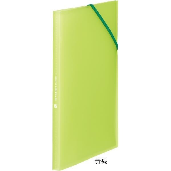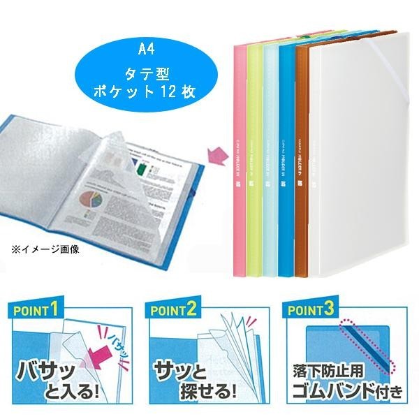 | 仕様 | 固定式・台紙なし A4タテ型 ポケット数:12枚 最大収納枚数:120枚 ゴムバンド付 |