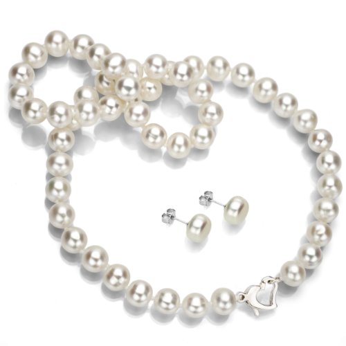 -. Feature : 925-Sterling Silver jewelry set, comes with an 18-inch length necklace that can be worn by everyone. Along with the necklace, you also get earrings set. The earrings compliment the necklace and help you complete the look. / These Freshwater Cultured Pearls come with natural high luster and shine which makes them look extremely exquisite. Our pearls represent the finest in pearl selection, hand-picked for its luster, cleanliness quality, and color. / Perfect gift set for yourself or for the women you value and love. Give it to a woman of any age, and she is surely will love and appreciate this beautiful jewelry set. This set can help you convey what you were unable to say with words. / Wear these pearl fine jewelry set to an evening event with an elegant dress or wear it to work with your formal attire. Pearls are a necessity for everyone's jewelry collection. / This jewelry set is beautifully assembled and designed by our highly skilled jewelers in the USA with great attention to quality and detail. To guarantee your complete satisfaction, we offer our customers a 45-Day return policy