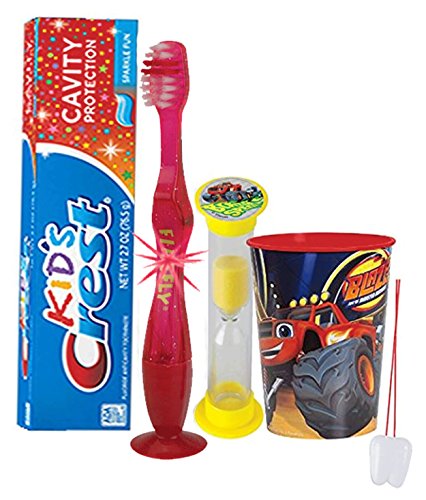 -. Title : "Blaze And The Monster Machines" Inspired 4pc Bright Smile Oral Hygiene Set! Flashing Lights Toothbrush, Toothpaste, Brushing Timer & Mouthwash Rinse Cup! Plus Bonus "Remember to Brush" Visual Aid!