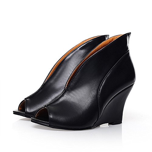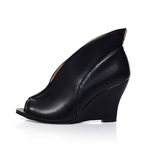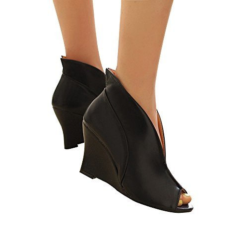 Product Description Immaculate in smooth black leather, Milesline's peep-toe booties are equal parts sharp and chic. The wedge heel and curvaceous silhouette will add interest to tailored trouser suits and skintight denim. 0