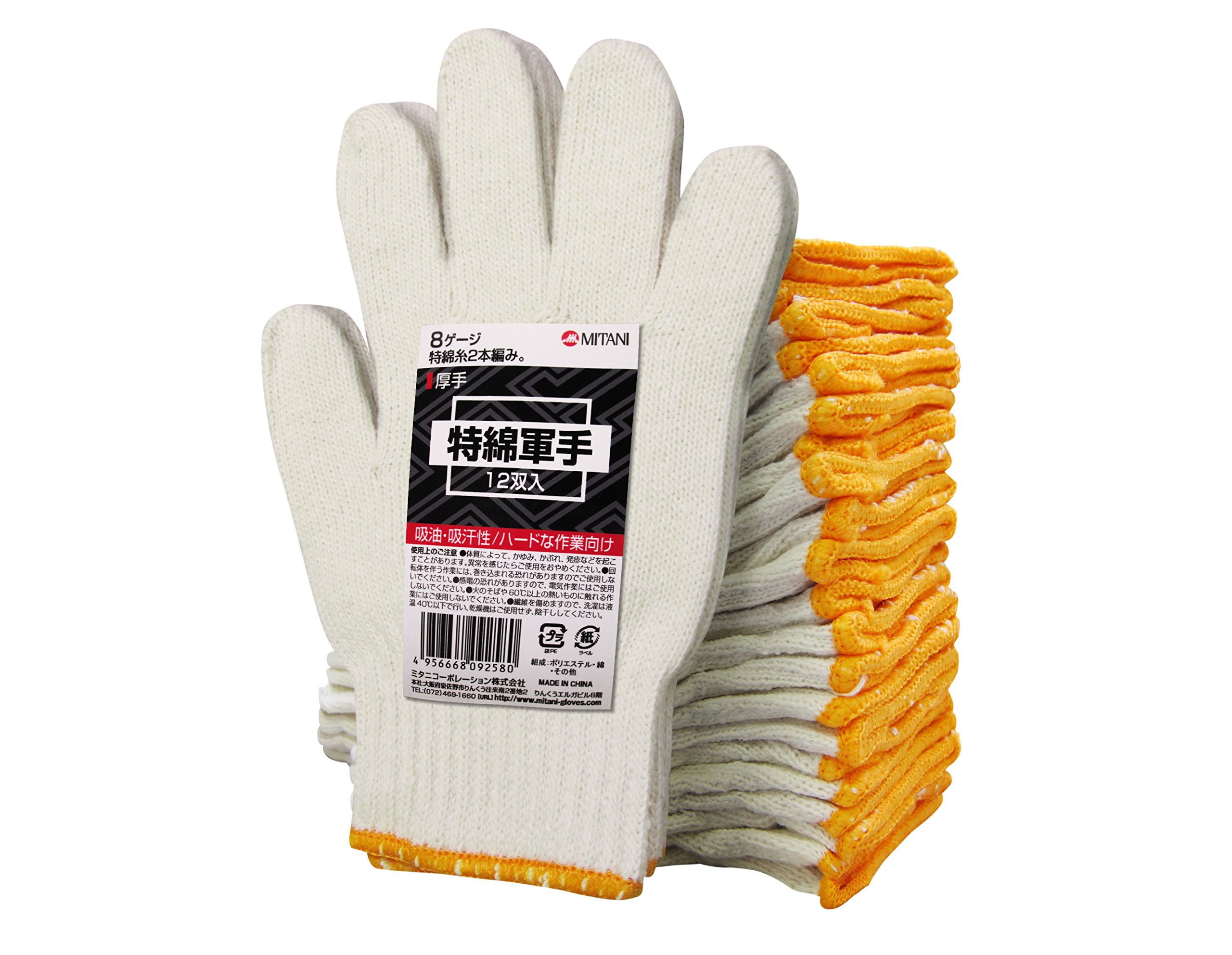 In addition, compared with pure cotton gloves, the cotton ratio is low, but the cost is suppressed, so it is a very suitable product for mass usage such as factory work.