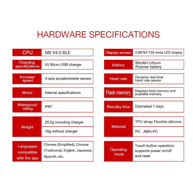 Function:Passometer,Sleep Tracker,Heart Rate Tracker,Alarm Clock,Remote Control,Call Reminder